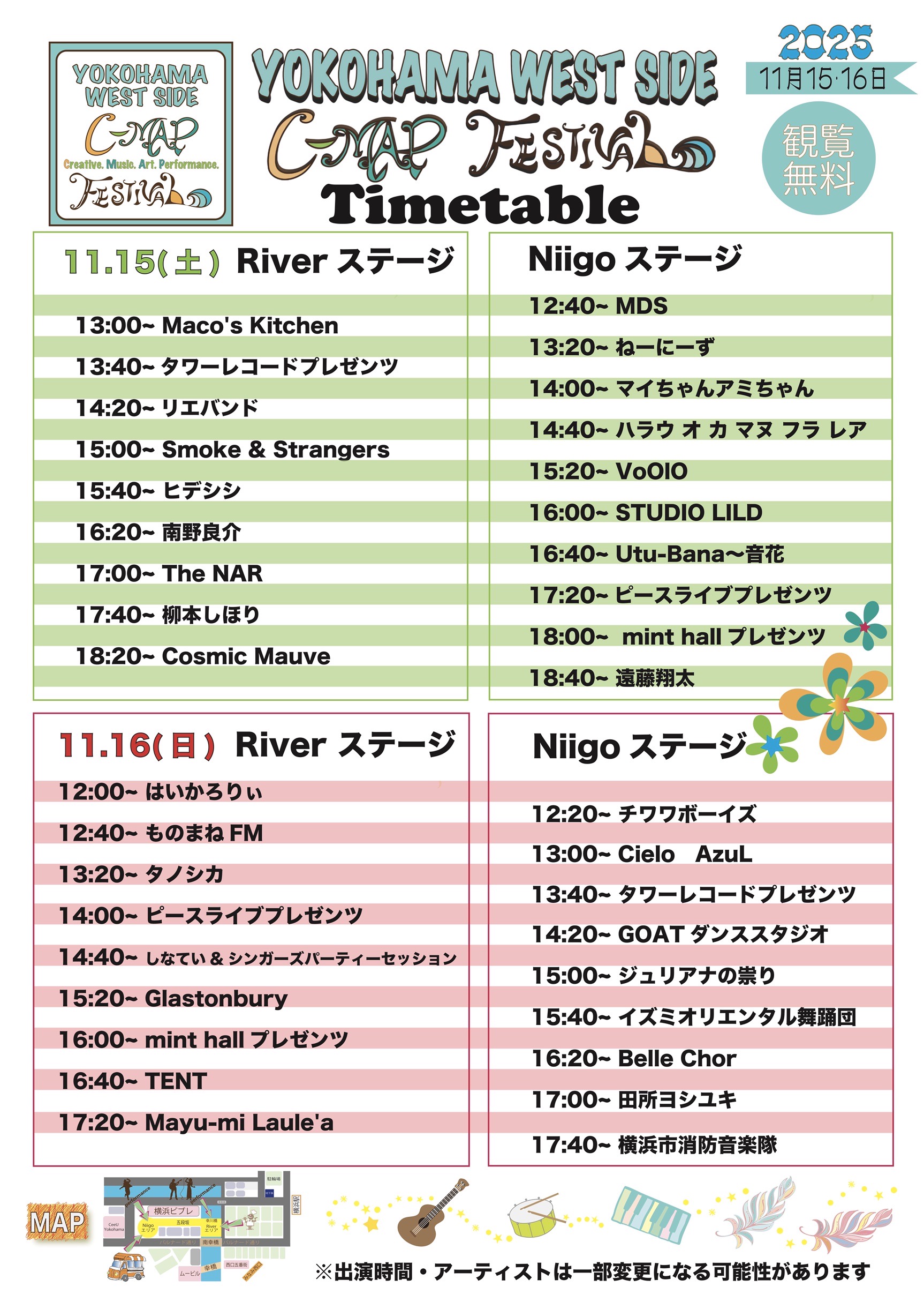 11月15日(土)・16日(日)に開催する、【C-MAP】音楽フェスの出演者スケジュールが決定いたしました!!