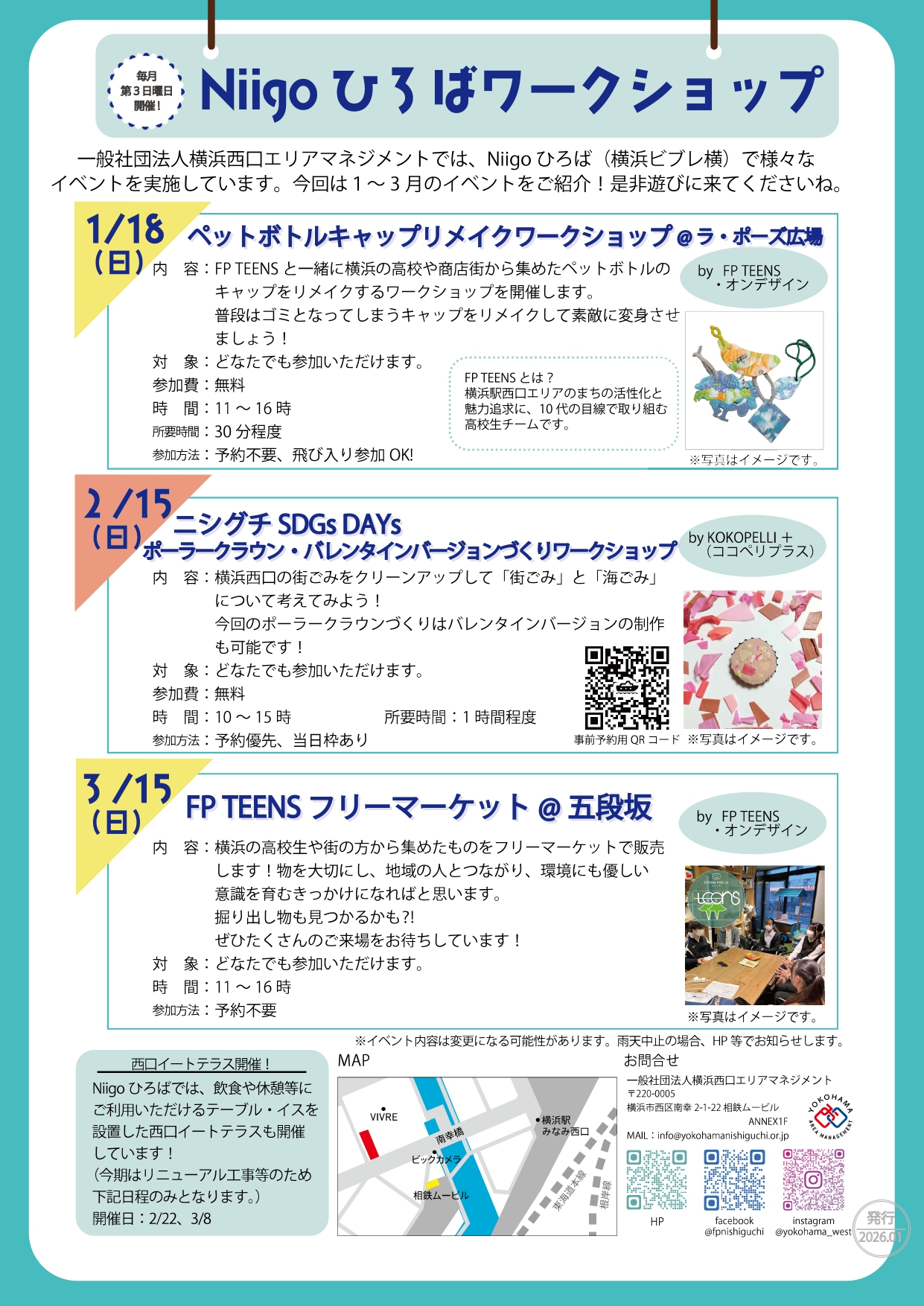 Niigoひろばでは毎月ワークショップを開催しています! 3ヵ月毎に予定をお知らせしていきますので、是非チェックしてみてくださいね👀 (今期はNiigoひろばリニューアル工事等の関係で、場所が変更になっている月もあるためご注意下さい。)